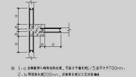 圖3.6.12 砌體與混凝土墻柱設(shè)置拉結(jié)筋示意